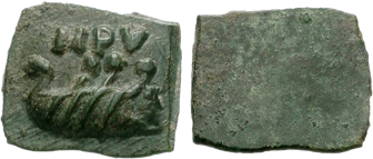 Galère sur une tessère anonyme. IIe - IIIe siècle av. J.-C. ( Italie )